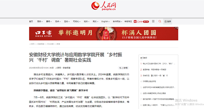 9月2日,人民网以《华体会最新官方统计与应用数学学院开展“乡村振兴‘千村’调查”暑期社会实践》为题,报道统数学院的535名学子们组成了108支乡村振兴“千村”调查专项队伍,投身乡村振兴一线,以实际行动为乡村振兴贡献青春力量,书写着属于自己的精彩篇章。